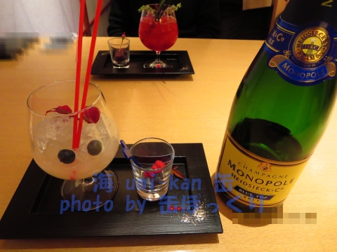 こちら、シャンパンをその場で注いでいただいて完成、という形のカクテルでした。おおお~。